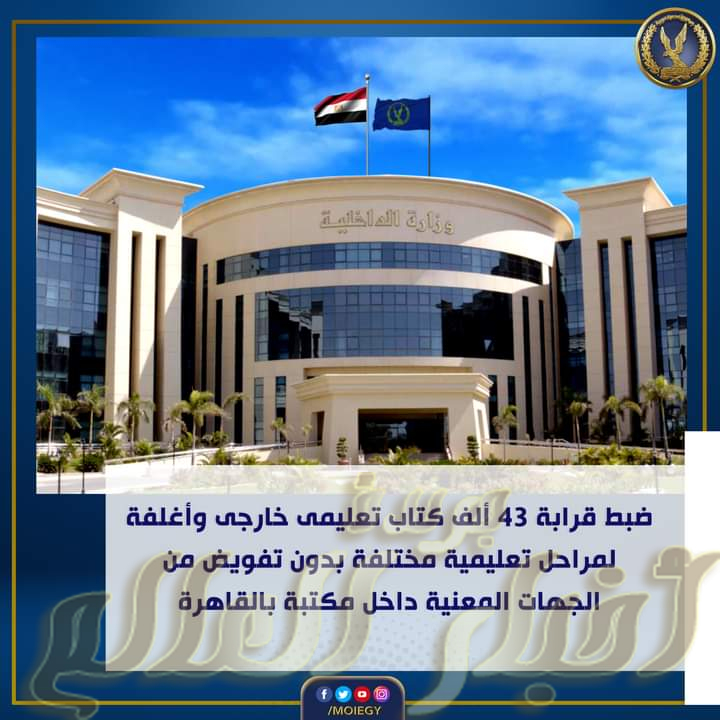 أكدت معلومات وتحريات قطاع الشرطة المتخصصة قيام (مالك مطبعة – كائنة بدائرة قسم شرطة دار السلام بالقاهرة) بطباعة العديد من الكتب التعليمية والأغلفة تحت التجهيز لمراحل تعليمية مختلفة بدون تفويض من أصحاب الحقوق المادية والأدبية أو تصريح من الجهات المعنية بالمخالفة للقانون