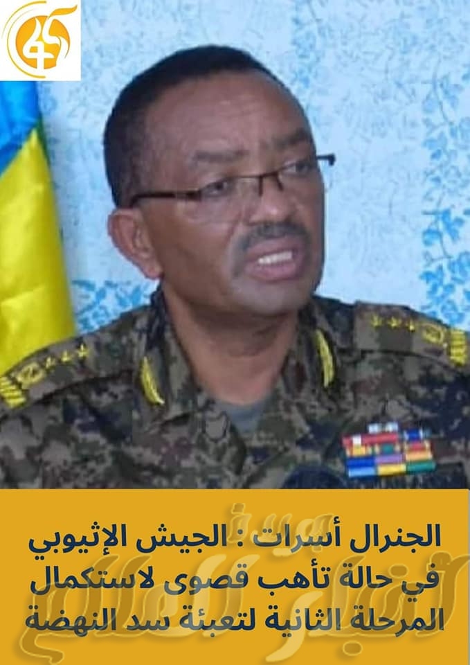 صرح الجنرال أسرات : أن الجيش الإثيوبي في حالة تأهب قصوى لاستكمال المرحلة الثانية لتعبئة سد النهضة