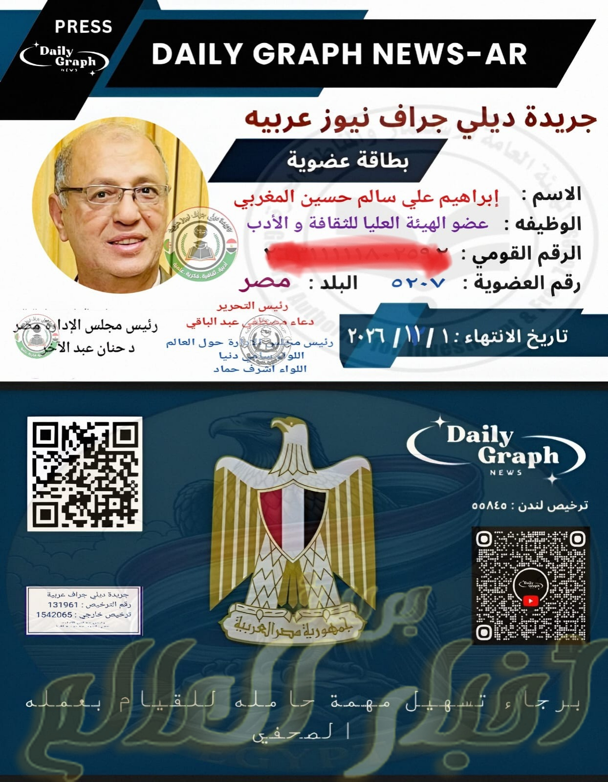 سعادة غامرة لدى الكتاب العرب بضم الدكتور ابراهيم سالم المغربى رمز من رموز الثقافة والأدب بجمهورية مصر الشقيقة للهيئة العليا للثقافة والأدب بجريدة ديلى جراف عربية بعد عرض ملفه على مجلس أمناء الجريدة