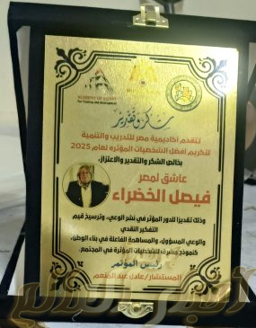 تكريم مستحق لشخصية جديرة بالاهتمام والتقدير الملقب بعاشق مصر فيصل الخضراء وسط قامات كبيرة من رجال الدولة وعلى رأسها رئيس الوزراء السابق دكتور عصام شرف تم تكريم المحب لمصر وأهلها الكويتى فيصل الخضراء بمؤتمر الأكاديمية المصرية للتدريب والتنمية الخامس بقاعة المؤتمرات الكبرى بمركز التعليم المدني وزارة الشباب والرياضة كأفضل ١٠٠شخصية عربية مؤثرة.