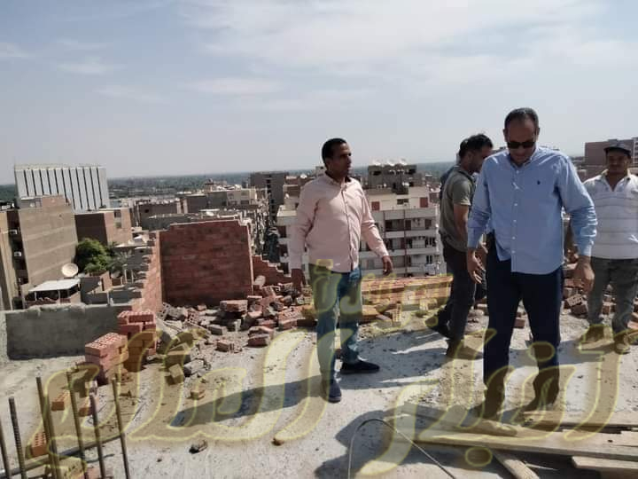 التابعة لها موضحاً إنه تم إزالة 12حالة تعدي على أرض زراعية بالبناء المخالف بقرى كوم المنصورة والعقب والمراونة ومنطقة الغياطة بفزارة التابعة لمركز القوصية ، كما تم ازالة حوائط لدور مخالف بشارع نزية خليفة المتفرع من شارع الجمهورية ، وإزالة أعمدة مخالفة بعقار بشارع النزهة ، وإزالة أعمدة دور رابع علوي مخالف بشارع الهلالي أعلي شركة جوباص وفك الشدة الخشبية لأعمدة الدور السابع العلوي بشارع فوزية نجيب ومصادرة اعمال البناء ، وتكسير صبة خرسانية داخل منور للتوسع منه والاستفادة بمساحة وضمها علي شقة بعقار رقم 11 بشارع الظافر) التابعة لحي شرق فضلاً عن تنفيذ إزالة فورية بمنطقة الناصرية داخل حيز العمراني على مساحه 120 متر تقريبا مركز الفتح وفك أعمدة الدور العاشر أمام قرية النخيل بحري مدينة أبوتيج.