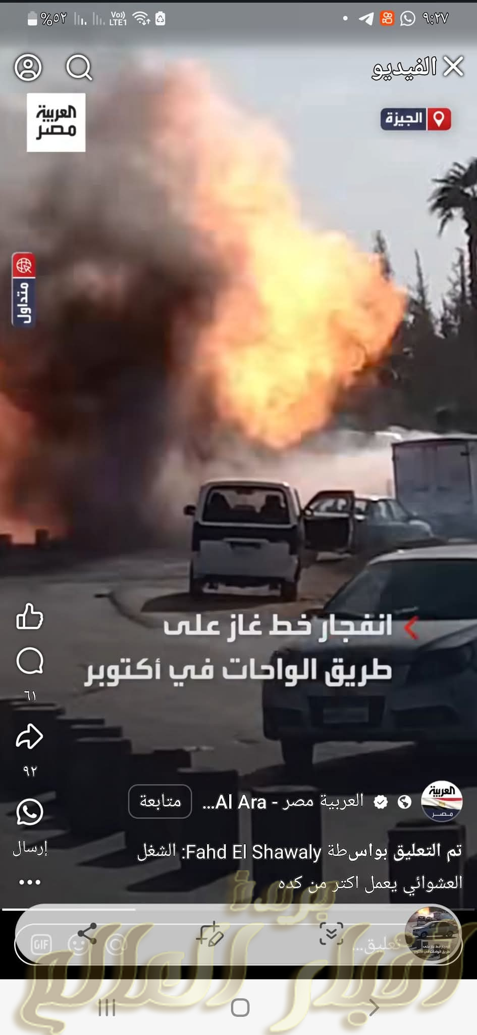 “حادث انفجار خط الغاز بمدخل أكتوبر: دعوة للمسؤولين لتفادي وقوع مثل هذه الكوارث مستقبلاً”