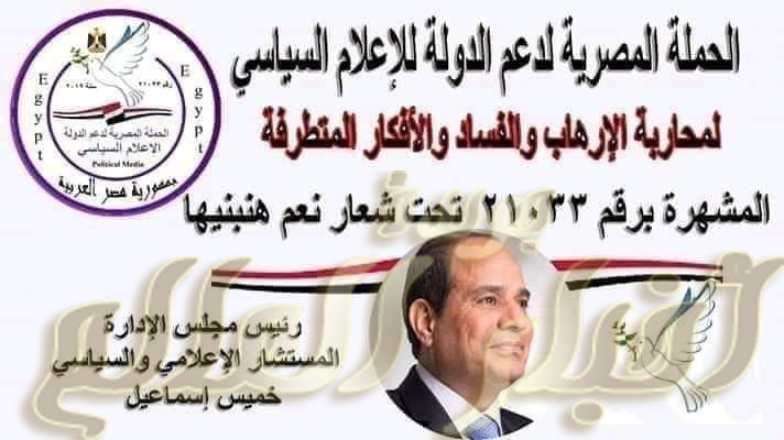 سيقوم المستشار الاعلامي والسياسي خميس اسماعيل مؤسس ورئيس الحملة المصرية لدعم الدولة للاعلام السياسي ورئيس مجلس ادارة جريدة وقناة اخبار العالم مصر بين يديك ورئيس المؤسسة المصرية لدعم الدولة للاعلام السياسي وحقوق الانسان والوطن العربي تحت التاسيس بمقابله