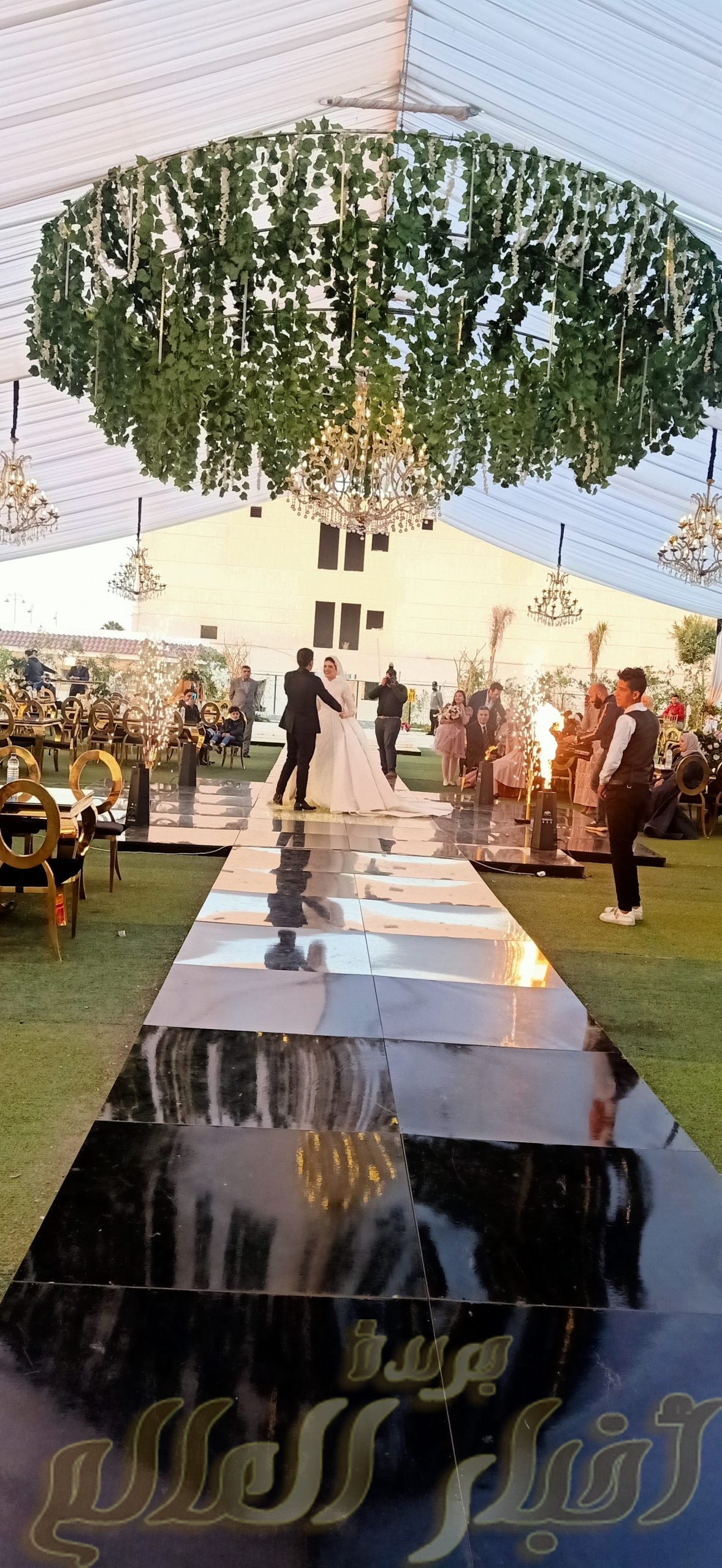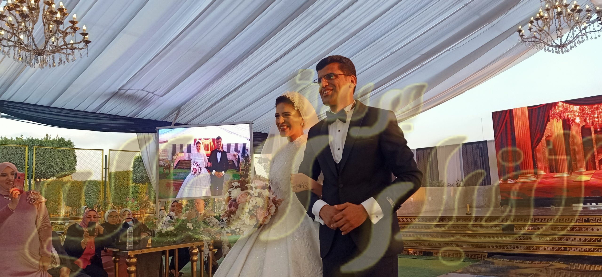 على انغام الموسيقى ورقص التنورة  والغناء الشعبي وفي حفل بهيج سعدت قاعة جاردينيا بعقد قرآن الدكتور محمود جمال حمام وعروسه هبه علاء في سهره جميله بنادي القوات المسلحة للحرب الكيميائية