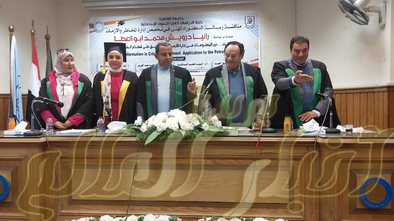 تم مناقشة رسالة الدكتوراه المهني في تخصص إدارة المخاطر مقدمة من الباحثة رانيا درويش محمد ابو العطا
