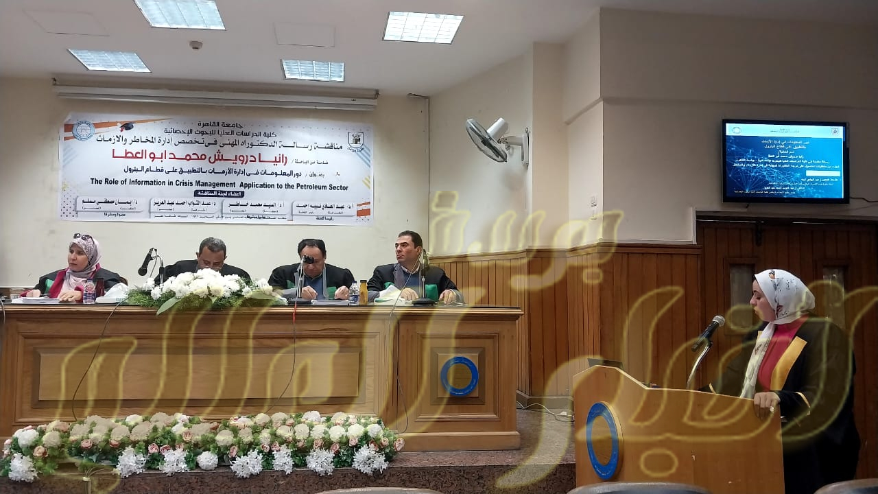 مناقشة رسالة الدكتوراة بعنوان دور المعلومات في إدارة الأزمات بالتطبيق علي قطاع البترول المصري
