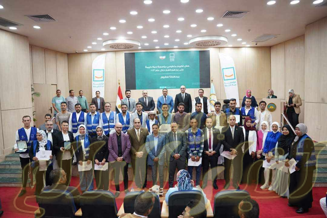 فى ختام الحفل كرم محافظ مطروح متطوعي مؤسسة حياة كريمة مع التقاط الصورة الجماعية معهم .