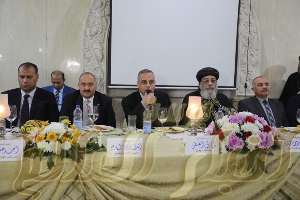 سوهاج — وفاء الدرمللى شهد اللواء طارق الفقى محافظ سوهاج مساء أمس، مأدبة العشاء التى أقيمت بمطرانية سوهاج للاقباط الارثوذكس على شرف قداسة البابا تواضروس الثاني بابا الإسكندرية وبطريرك الكرازة المرقسية، على هامش زيارته لمحافظة سوهاج، والتى تستمر حتى يوم الخميس القادم. حضر مأدبة العشاء اللواء حسن محمود مدير أمن سوهاج، والدكتور أحمد سامى القاضى نائب المحافظ، والدكتور أحمد عزيز رئيس جامعة سوهاج، واللواء أشرف ابوالمكارم رئيس فرع الامن الوطنى، والعميد أحمد حسن رئيس فرع هيئة الرقابة الإدارية، والمهندس طارق الوراقى السكرتير العام المساعد للمحافظة، وأعضاء مجلس النواب عن المحافظة،…