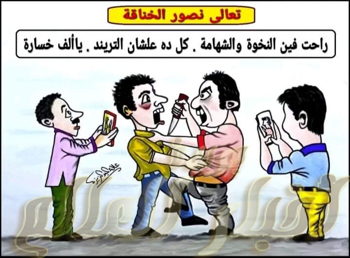 علاء عبد العزيز/ الريشة والقلم ظهرت في الآونة الأخيرة تصرفات وسلوكيات غريبة ودخيلة على الشعب المصرى فليس من المعقول أن أفتح الكاميرا لأرصد لحظات حرجه أثناء مشاجرة وانا أرى استنجاد شخص بالمارة قبل أن يقتله او يذبحه الاخر . شباب مصر ورجالها المعروفين بالشهامة والنخوة والرجولة . ومن هنا كانت الدعوة من خلال هذا الكاريكاتير للابتعاد عن السلبية والتخاذل ولتغيير تلك السلوكيات الخاطئة .