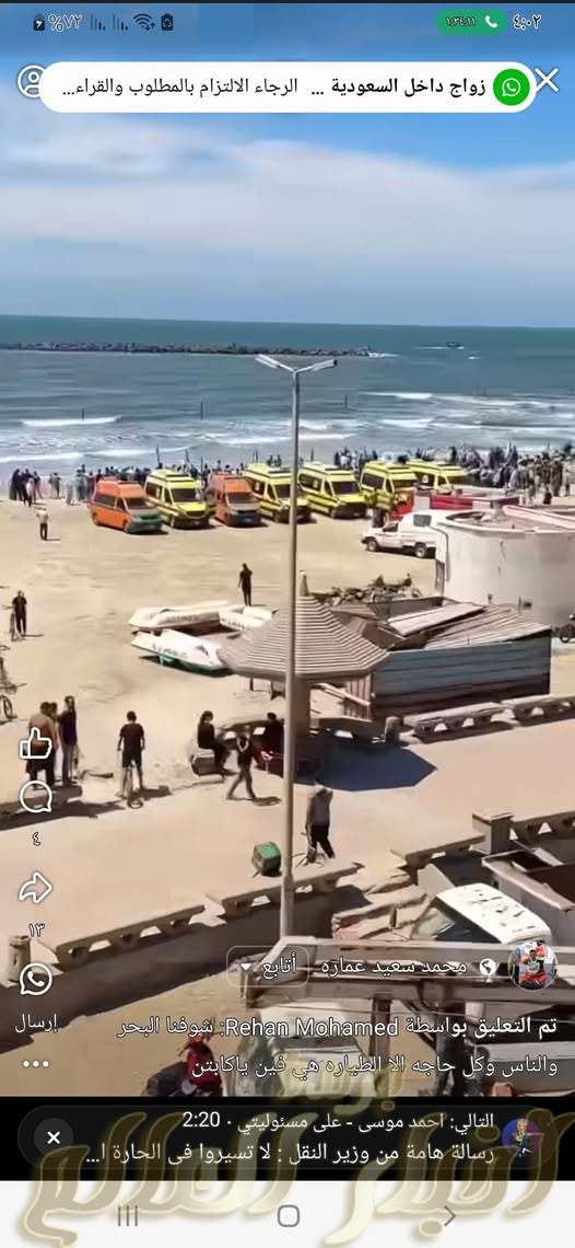 بقلم: المستشار الإعلامي والسياسي خميس إسماعيل — أنا وقلمي وقهوتي… جلست في ركنتي الهادئة، أرتشف فنجال قهوتي المُرّة كعادتي، حين قطع هدوئي خبر عاجل اخترق السكون كالصاعقة. قلمي ارتجف لحظة سماعه، لكني تماسكت، فها أنا أكتب الآن عن لحظة صادمة، لحظة لم تكن في الحسبان، لكنها وقعت أمام أعين الجميع… في مشهد مؤلم ومفاجئ، سقطت طائرة حربية مساء اليوم أمام شاطئ 63 بمدينة رأس البر، وسط ذهول المصطافين ومرتادي الكورنيش. وعلى الفور، هرعت سيارات الدفاع المدني، والإسعاف، وقوات الشرطة إلى موقع الحادث، في محاولة للسيطرة على الموقف، وإنقاذ ما يمكن…