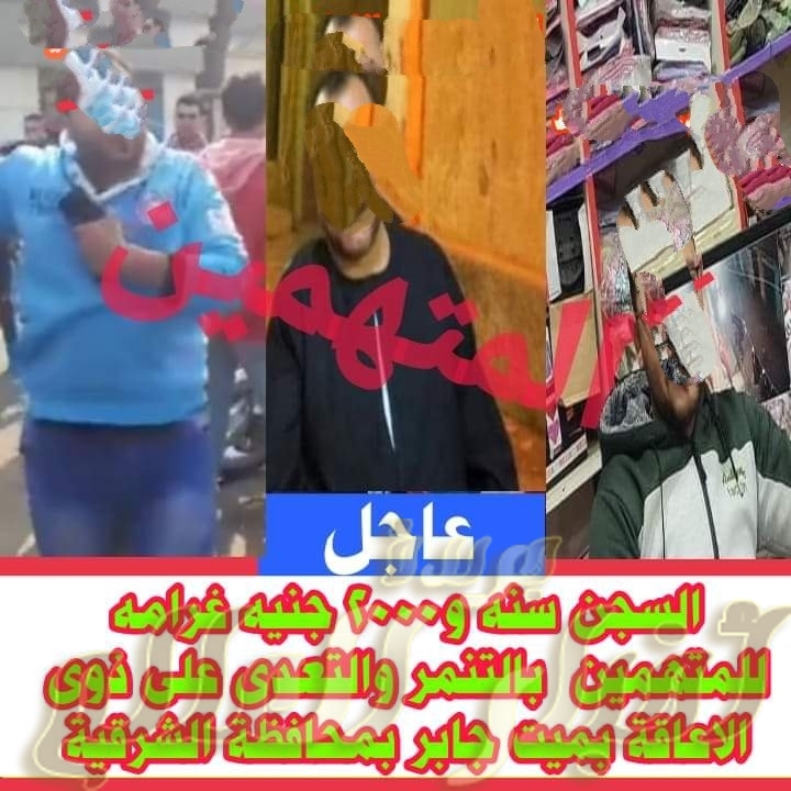 السجن سنه لـ”ثلاثة متهمين بالتعدى على ذوى الاعاقة بميت جابر بمحافظة الشرقية” متابعه – حملة 15 مليون معاق فرسان الإرادة قضت محكمة جنح بلبيس بمحافظة الشرقية ، الاربعاء 2021/7/7، بالسجن سنه وغرامه 5000 ألف جنيه على المتهمين «أ. ع»و ع.س و .م.ح، وشهرتهما العمدة لقطع غيار موتوسيكلات لكل منهما، في اتهامهما بالاعتداء على زوجين من ذوى الاعاقة بقرية ميت جابر بمحافظة الشرقية. وكانت النيابة العامة قد أمرت باخلاء سبيل المتهمتيْنِ على ذمة القضية بكفالة 2000 جنيه لكل متهم لاتهامهما بالاعتداء على ذوى الاعاقة، كانت زوجة من أصحاب الهمم وزوجها تقدما…