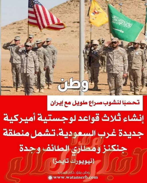 بقلم المستشار الإعلامي والسياسي خميس إسماعيل رئيس مجموعة الكيانات المصرية ورئيس جريدة وقناة أخبار العالم مصر — تحسّبًا لصراع طويل الأمد مع إيران… أمريكا تعيد ترتيب أوراقها غرب المملكة في خطوة تحمل دلالات استراتيجية عميقة وتكشف عن سيناريوهات صدام قد تكون وشيكة، فجّرت صحيفة نيويورك تايمز مفاجأة كبرى، بالإعلان عن إنشاء ثلاث قواعد لوجستية أمريكية جديدة غرب المملكة العربية السعودية ، في كلٍّ من: منطقة جنكنز مطار الطائف مطار جدة ويبدو أن الولايات المتحدة الأمريكية بدأت ترجّح كفة “التحوّط العسكري” أكثر من كفة “الردع السياسي”، في ظلّ تصاعد التهديدات الإيرانية…