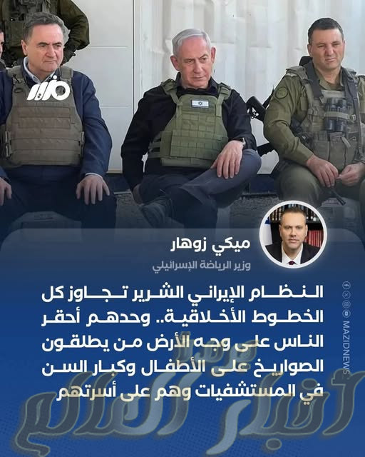 ميكي زوهار يهاجم إيران ويتناسى مذابح غزة وجرائمه ضد الأطفال بقلم: خميس إسماعيل — في تصريح مستفز وفاقد لأدنى درجات الإنسانية، خرج وزير الرياضة الإسرائيلي ميكي زوهار ليقول: > “فقط أحقر من على وجه الأرض يطلق الصواريخ على من يرقدون في أسرتهم في المستشفيات، ليعلم العالم كله أن النظام الإرهابي والوحشي الإيراني يجب اقتلاعه من أجل أمن إسرائيل والعالم الحر بأسره.” تصريحات مثل هذه تكشف الوجه الحقيقي لحكومة الاحتلال التي اعتادت أن تُلبس الباطل ثوب الحق، وتستغل عناوين “الأمن” و”السلام” لتبرير جرائمها الممنهجة ضد الأبرياء. فكيف لمن يقصف المستشفيات في…